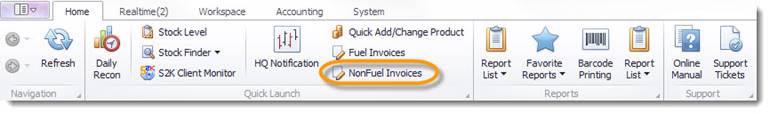 2: Go to the Series2K Home Screen. In the Navigation toolbar, under the Quick Launch section, click the “Non-Fuel Invoice” link (pictured below).