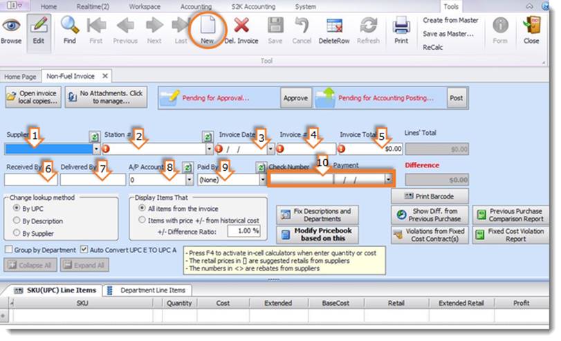 Entering a Non Fuel Invoice Manually