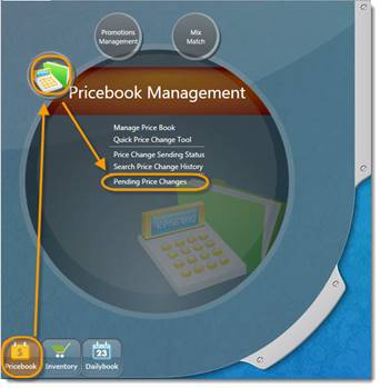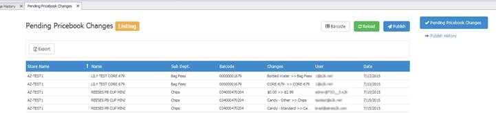 The pending price change window shows the list of items that have been changed and are waiting to go to the POS system.