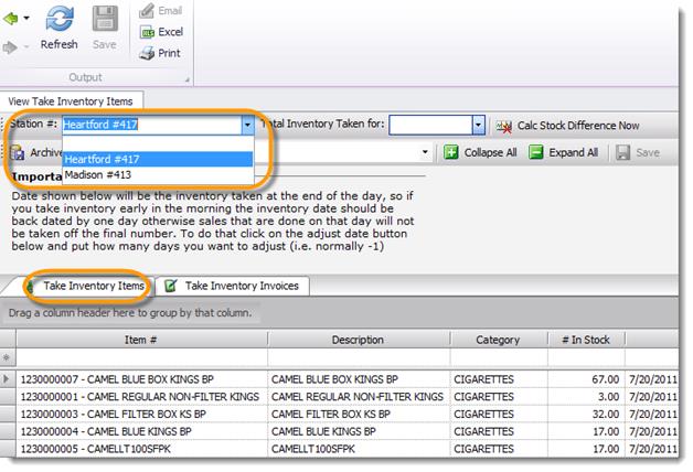 Select a Station from the dropdown box and the inventory data will load (pictured below).