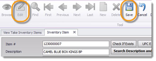 To make changes in the item details screen, click the ‘Edit’ button to make changes and then click ‘Save’.