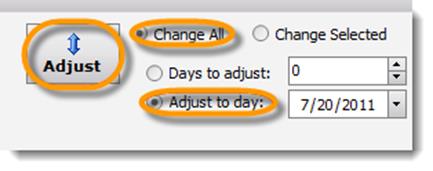 Select ‘Change All’, select the desired date from the calendar dropdown via ‘adjust to day’, and click the ‘Adjust’ button (pictured below).