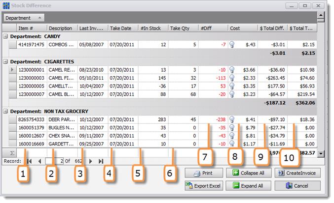 10. $ Total Taken- The dollar value of the Take QTY column at cost