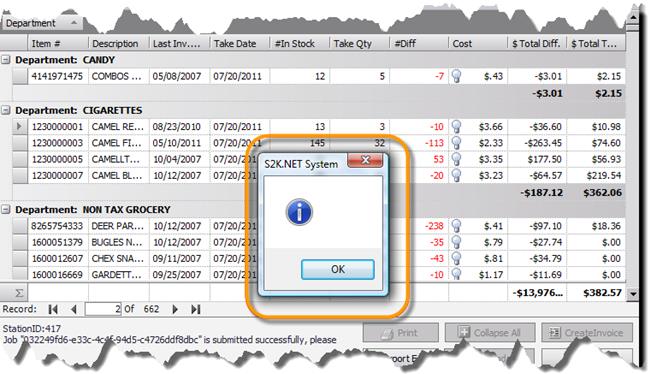 To Process the Inventory, the final step is to ‘Create Invoice’. Click the ‘Create Invoice’ button and the system will upload the inventory and create a ‘Take Inventory Invoice’.