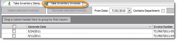 All Take Inventory Invoices can be found in the ‘Take Inventory Invoices’ tab, shown below.