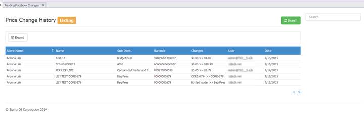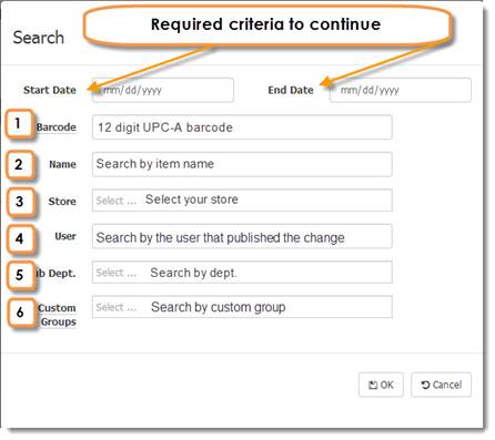 You can use this feature to see price, name or department changes that have occurred in the past. Listed in this window you will be able to see the store where the change was published, the name of the item, the sub-department, the item’s barcode, the change that was made old >>> new, the user that made the change and the date of the change. Up to the last 10,000 price changes are accessible with this search tool.