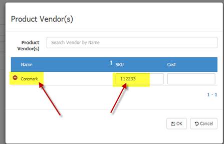 5- Search for vendor, or if it is already listed, enter SKU next to the vendor name, click OK when done: