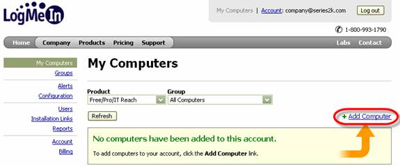 To add more PCs, go to the PC, then open go to www.logmein.com. Enter the email and password you entered when first creating your account.