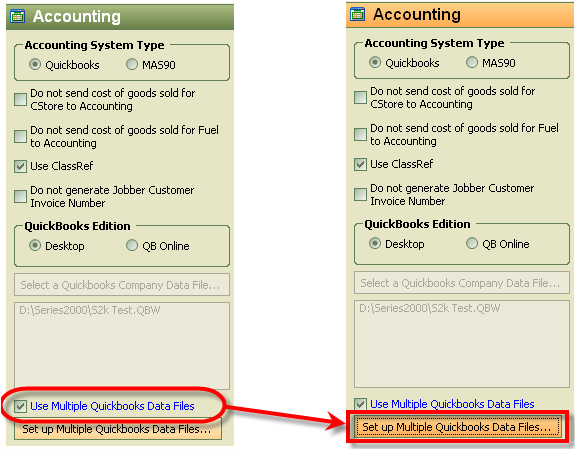 Select the option shown below to use ‘Multiple QuickBooks Data Files’. Then click ‘Set up Multiple QuickBooks Data Files’.