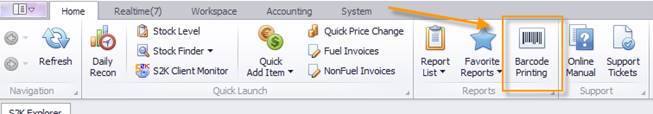 Click on the Barcode Printing tab in the reports section the navigation toolbar