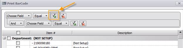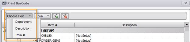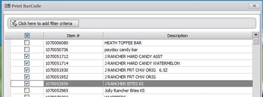 After selecting the list of items to print barcodes for, you will need to pick a site the barcodes will be printed for, and you will need to determine if you want your label to display the price along with the barcode.