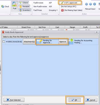 To approve a specific station day just click on the Approval button shown below, click “Approve” for the date/station you want and then click “OK”.