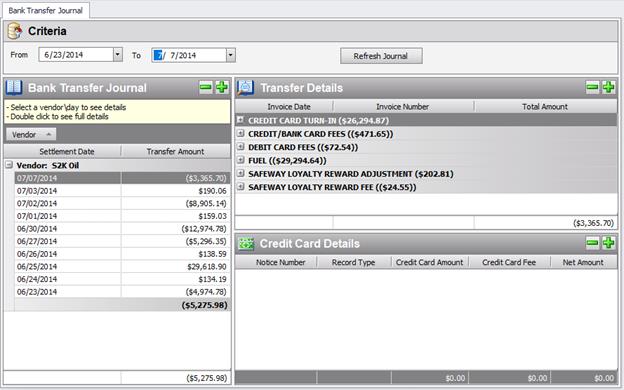 Adjusting the date range can be accomplished by updating the FROM and TO date selection boxes and click the refresh journal button