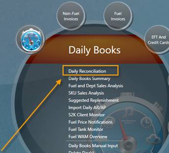 Open the Daily Reconciliation page by clicking the first link, Daily Reconciliation.