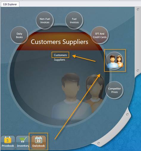 From the Daily Books Menu, choose the Customers and Suppliers bubble. Then choose customers.