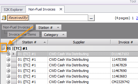 Click the plus (+) sign next to the station name to expand the list of invoices: