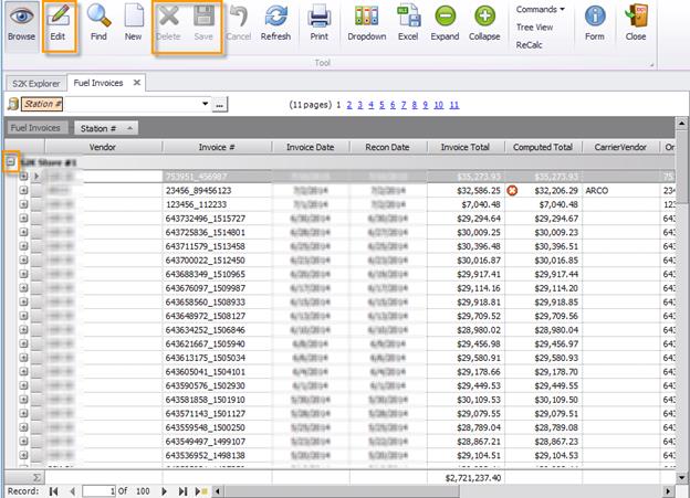 You can search for invoices using from one to all of the search criteria seen above, including Station#, Vendor, Invoice #, Invoice Date, Invoice Total and Date.