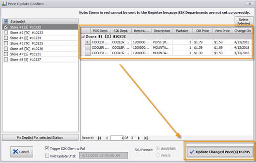 The price changes from the handheld will be pending in this screen for you to send to the POS.