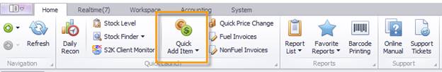 To start adding new items into S2K, use the Quick Add Item tool located on the navigation toolbar at the top of the main home page