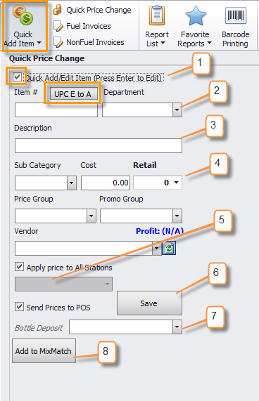 1. Check the box for Quick Add/Edit Item