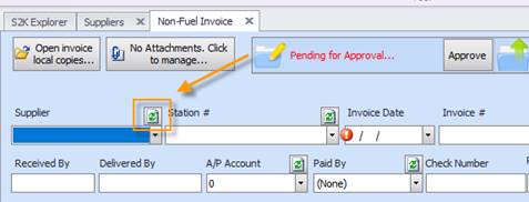 To update the Non-Fuel Invoice screens, you click on the small refresh icon next to the supplier dropdown: