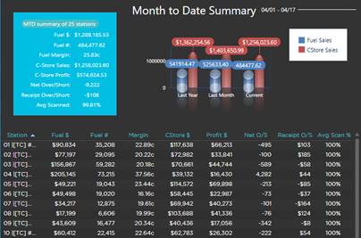 1. Month to Date Summary- shows sales, margin, profit, and over/short MTD