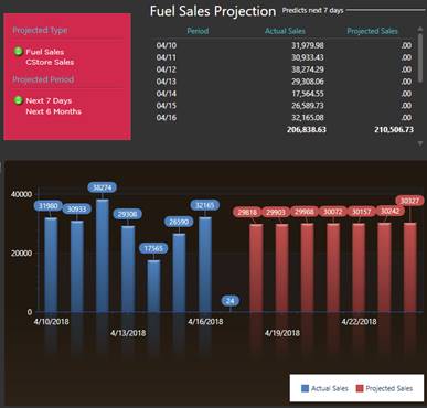 6. Fuel Sales Projection- Predicts next 7 days of sales for either Fuel or C-store and compares to past 7 days