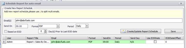 6. Click Create/Update Report Schedule when all other settings complete.