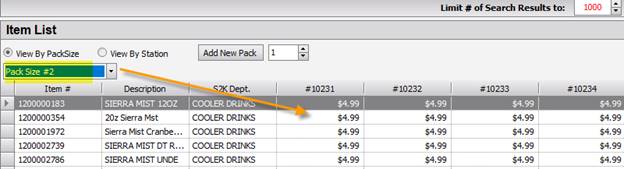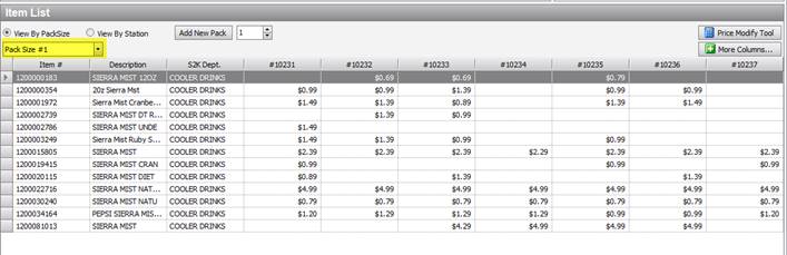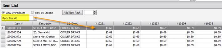 To add a retail for the new pack size, you must select it from the dropdown. For example, choose "Pack Size #2" and the retail prices for items will update to reflect current pack size 2 pricing