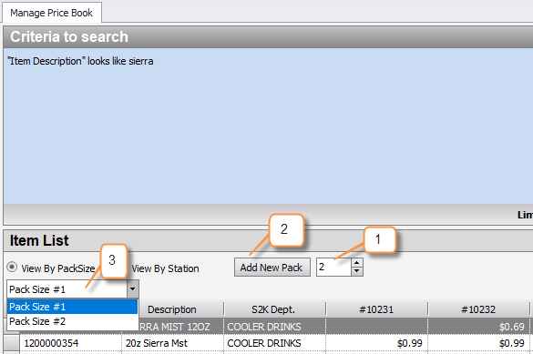 To setup multi pack pricing, open the Manage Price Book link located in Pricebook menu