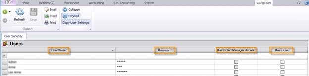 To create a restricted user in S2K, select the restricted checkbox next to the Username and then select the Allowed Features that the User can access.